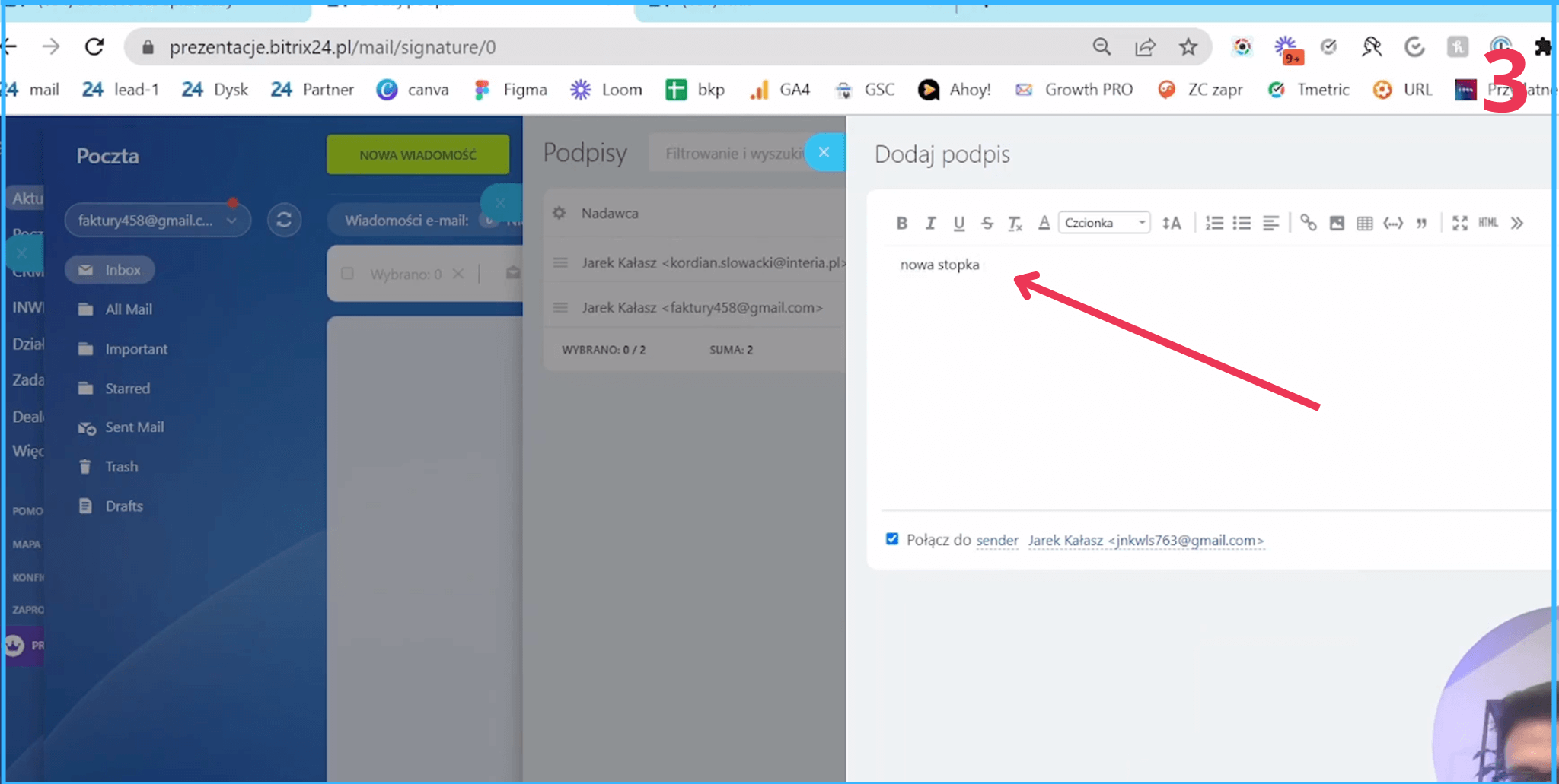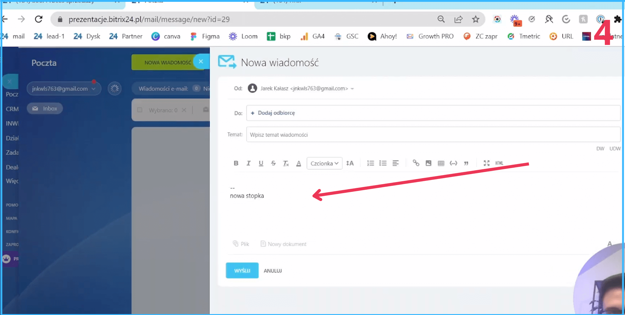 Teraz jak wejdziemy na konto do którego została przypisana dana stopka, ona nam się wyświetli, kiedy dodamy ‘Nową wiadomośc’.