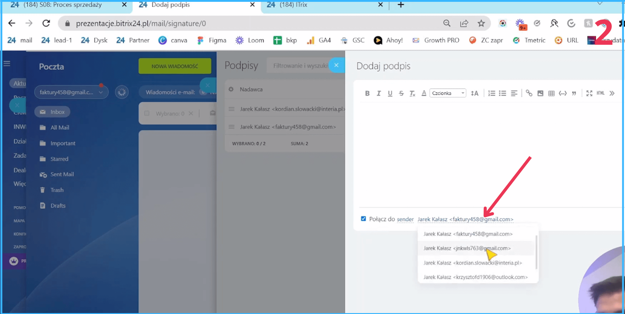Bardzo przydatna funkcja pod względem zarządzania wieloma skrzynkami, ponieważ to Ty decydujesz, które skrzynki pocztowe będą stosowane i jakie podpisy mają się wyświetlać klientowi.