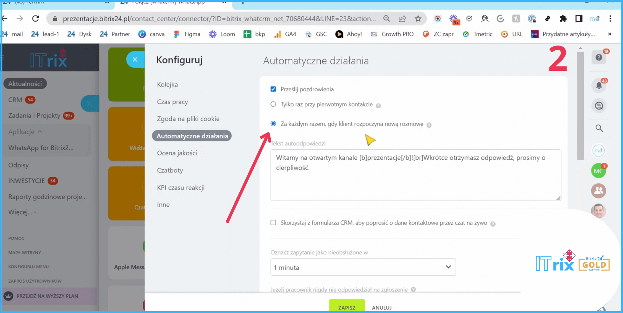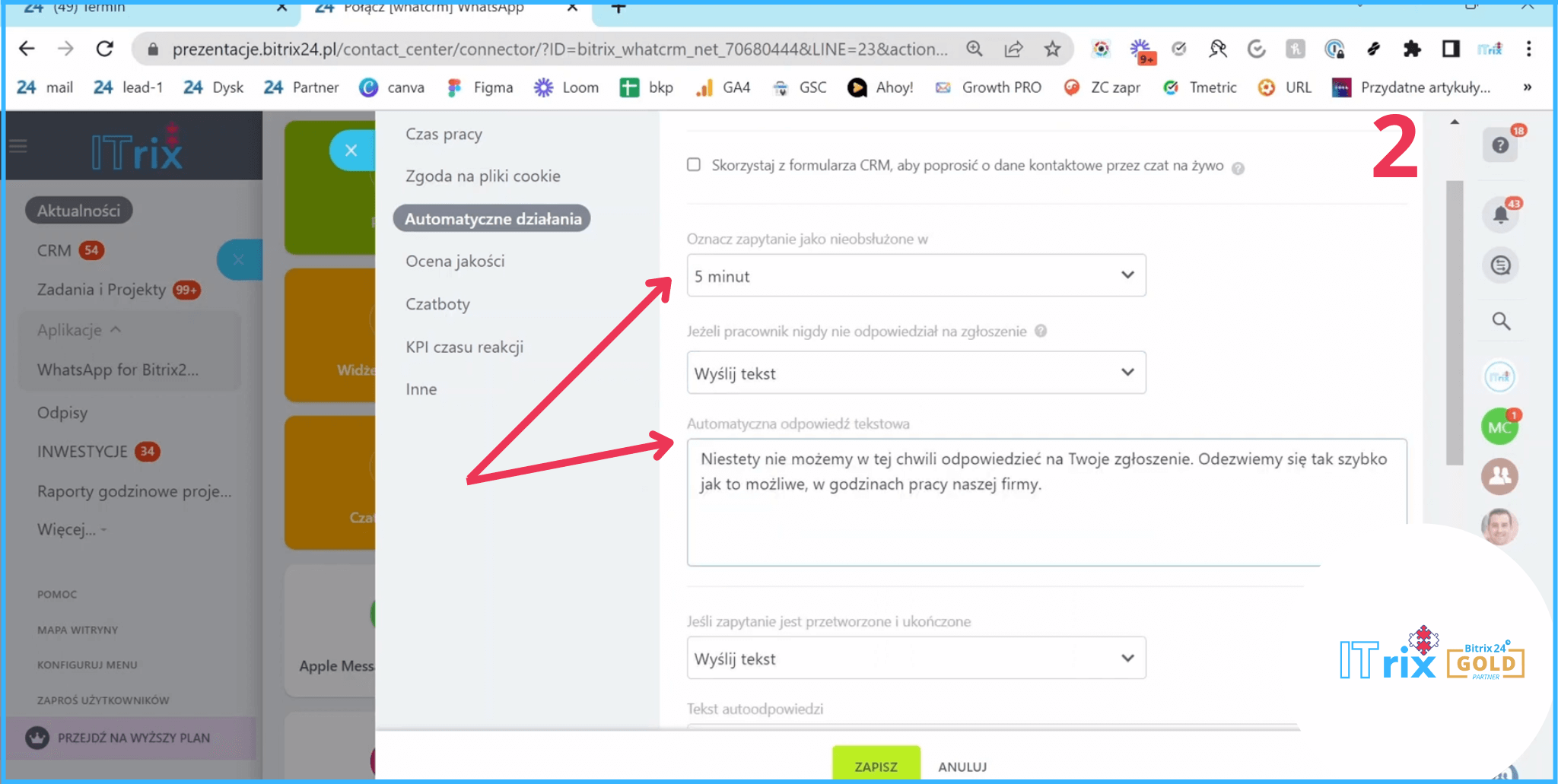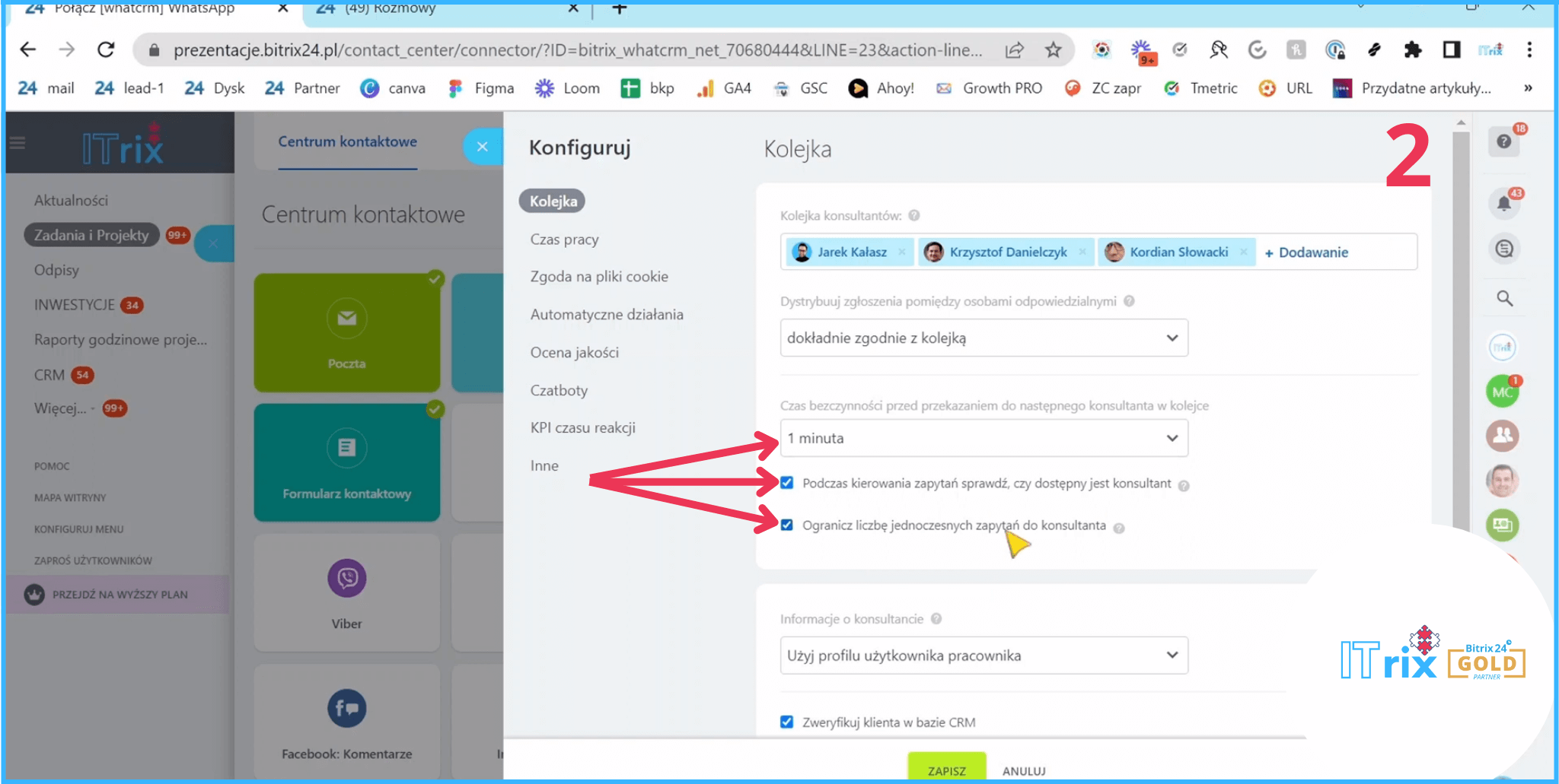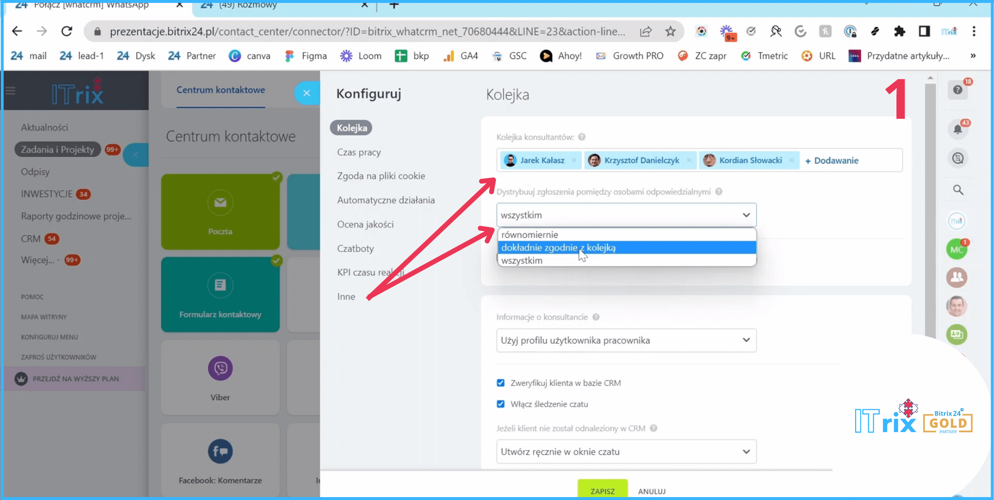 Korzyść 5: Dystrybucja połączeń WhatsAppa w Bitrixie