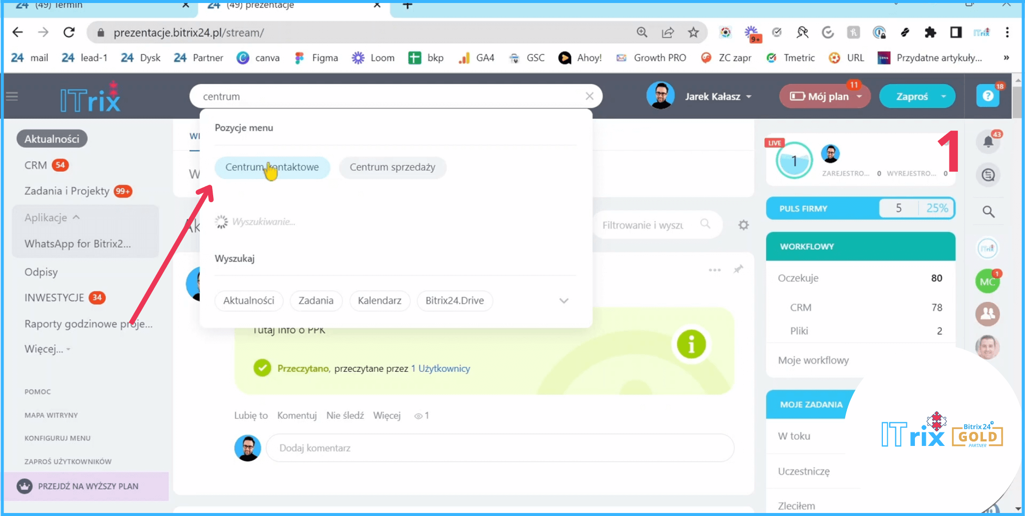 Zobaczmy jak to może wyglądać. Wejdziemy do ‘Centrum kontaktowe’.