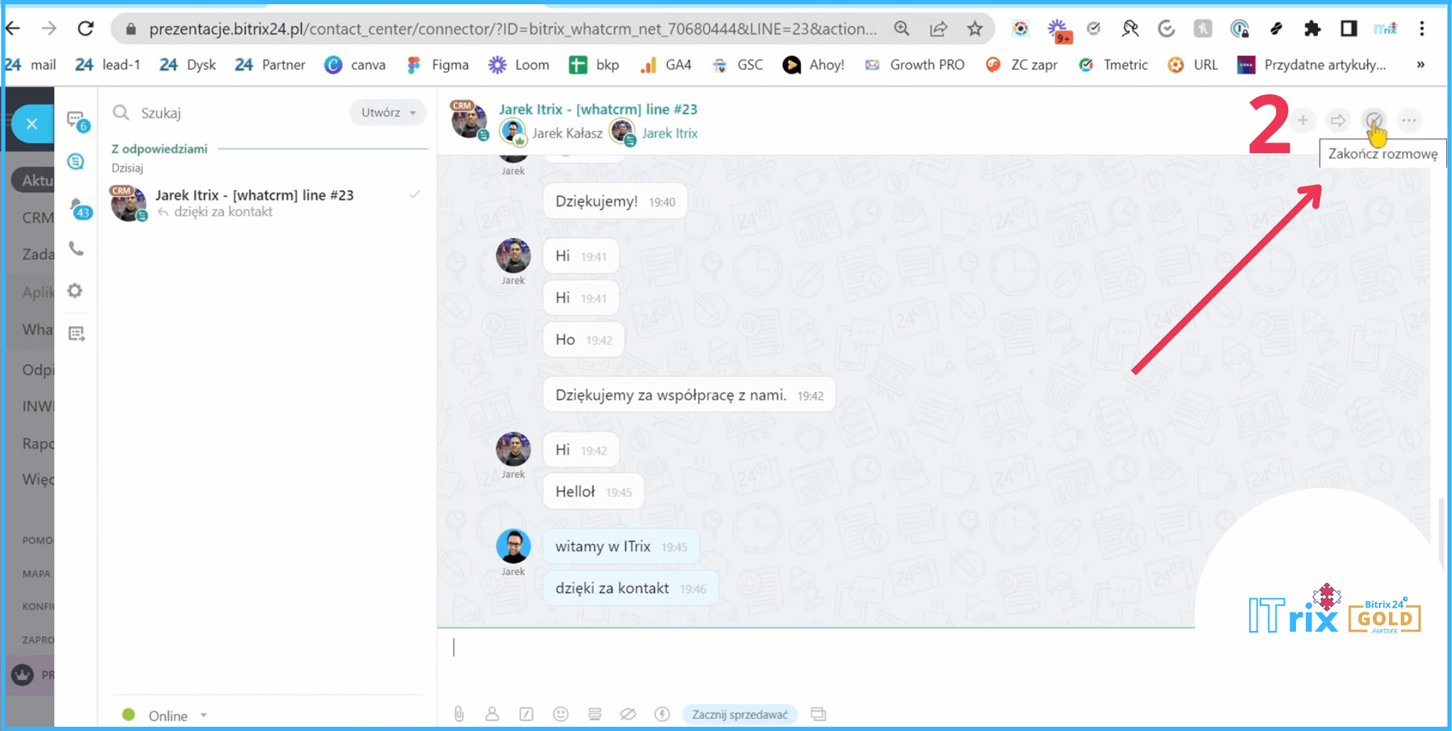 Teraz klikamy ‘Zakończ rozmowę’. Teraz to bezpośrednio trafiło do systemu, nie musimy tego robić ręcznie. Pracuj mądrze, a nie ciężko!