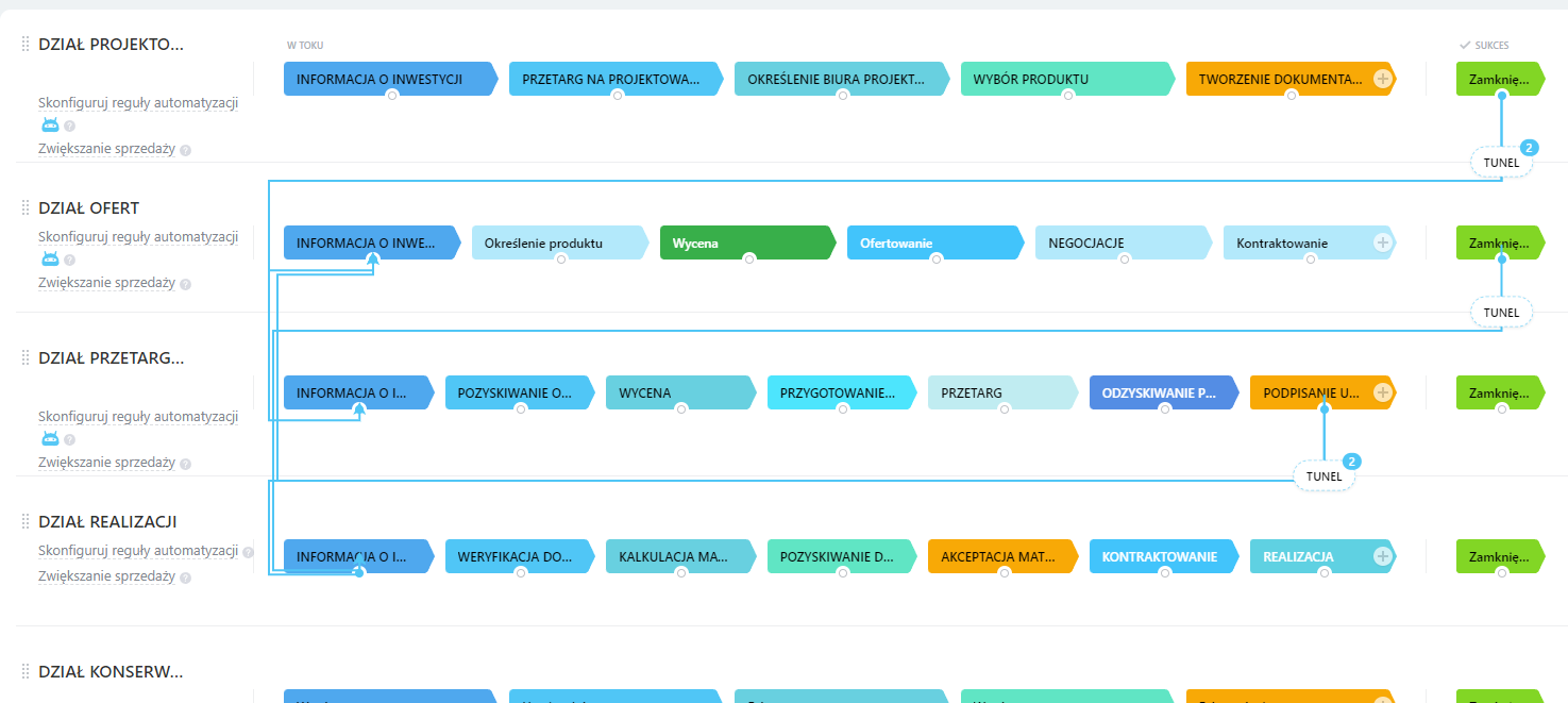 Dlatego też, każdy z lejków został przez nas wyposażony w automatyczny system przyznawania zadań odpowiednim osobom w odpowiednim czasie.