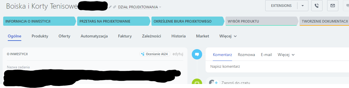 Ale to też niestraszne naszym rozwiązaniom! Od teraz każda inwestycja jest naznaczona etapem na którym przebywa oraz historią działań wraz z zakończonymi zadaniami, połączeniami i wiadomościami e-mail.